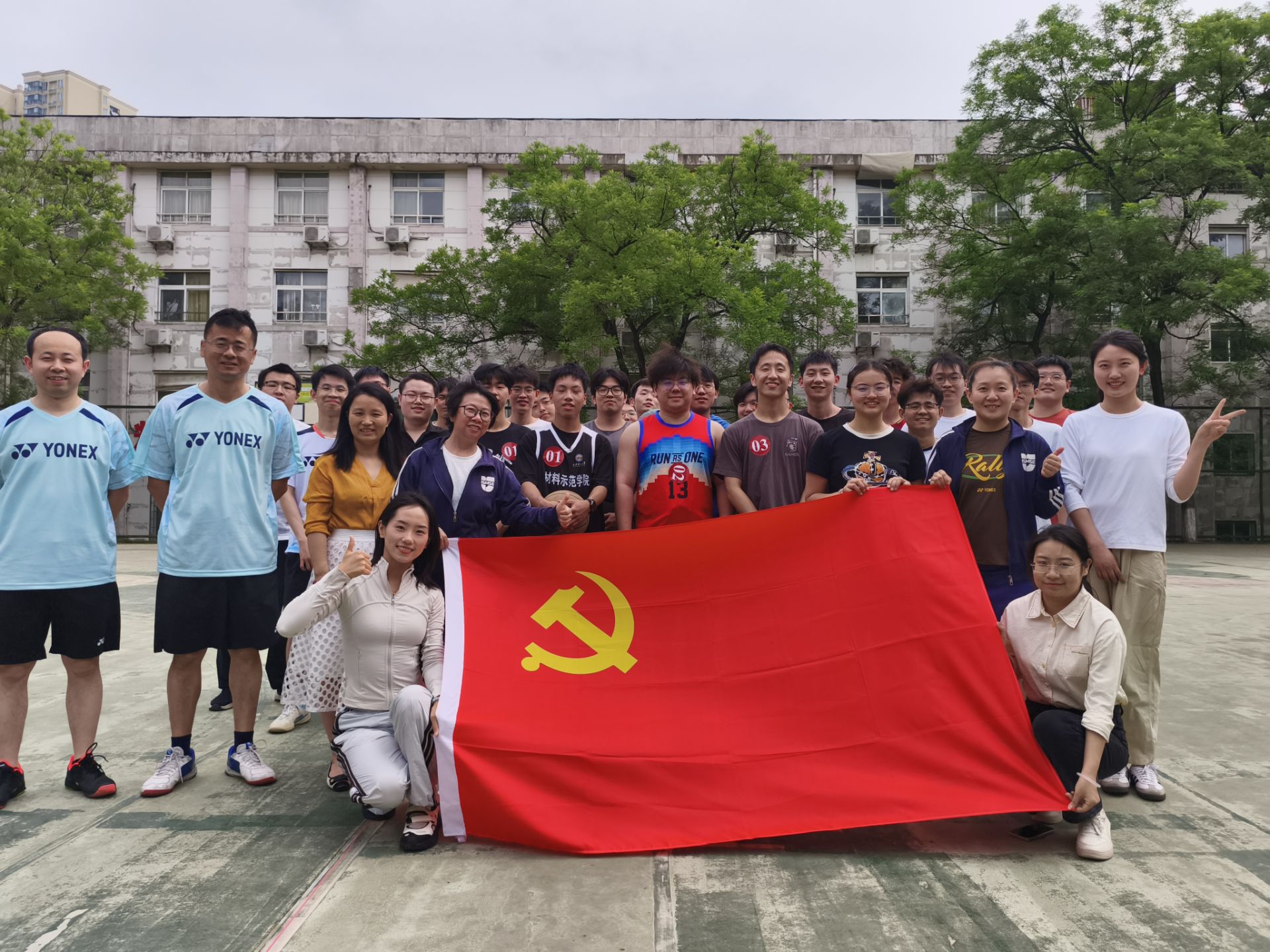 4月30日下午,性爱视频 研究生励行党支部在狮城社区篮球场牵头组织“团结奋进新征程 拼搏共筑同心圆”主题党日活动,性爱视频 党委书记严岿、教工党支部、各学生党支部共30余位党员及入党积极分子参与。