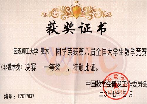 据悉,全国大学生数学竞赛是中国数学会主办的一项面向本科生的全国高水平学科赛事,是全国高校规模最大、影响范围最广的大学生学科竞赛之一,也是国内最高级别的大学生基础数学学科竞赛。第八届全国大学生数学竞赛经过校内选拔赛、省赛和全国决赛三个环节,来自全国各高校近300名优秀学子入围终审决赛,大赛决出了一、二、三等奖和鼓励奖,其中一等奖47名。袁木同学经过层层选拔,最终作为我校唯一入围全国总决赛的参赛选手,并以优异成绩斩获全国一等奖。(供稿:材科xs1501班)