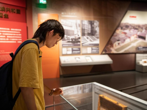实践队走进瑞金中央革命根据地纪念馆,大厅内醒目的“人民共和国从这里走来”题字体现出了博物馆非凡的纪念意义。馆中模拟实景、互动投影等科技手段,融合了现代与传统的表现方法,带领实践队员穿越中央革命根据地和中华苏维埃共和国的历史主线,回顾中国共产党领导开展的治国理政的伟大实践。当年仅24万人口的瑞金,一共有11.3万人参军参战,5万多人为革命捐躯,其中1.08万人牺牲在红军长征途中。看到这里,实践队员驻足沉思,深受震撼,不禁感慨道:“条件再简陋、生活再艰苦都无法阻挡先烈们革命的决心,先辈用不屈的意志和坚定的信仰,谱写了一段中国革命史上的伟大史诗。”